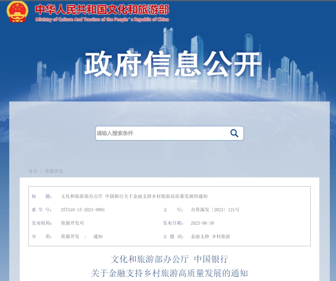 近日,文化和旅游部联合中国银行印发《文化和旅游部办公厅 中国银行关于金融支持乡村旅游高质量发展的通知》(以下简称《通知》),从“加大信贷投放”“推进产品创新”“开展综合服务”等方面,加大对乡村旅游高质量发展的金融支持。