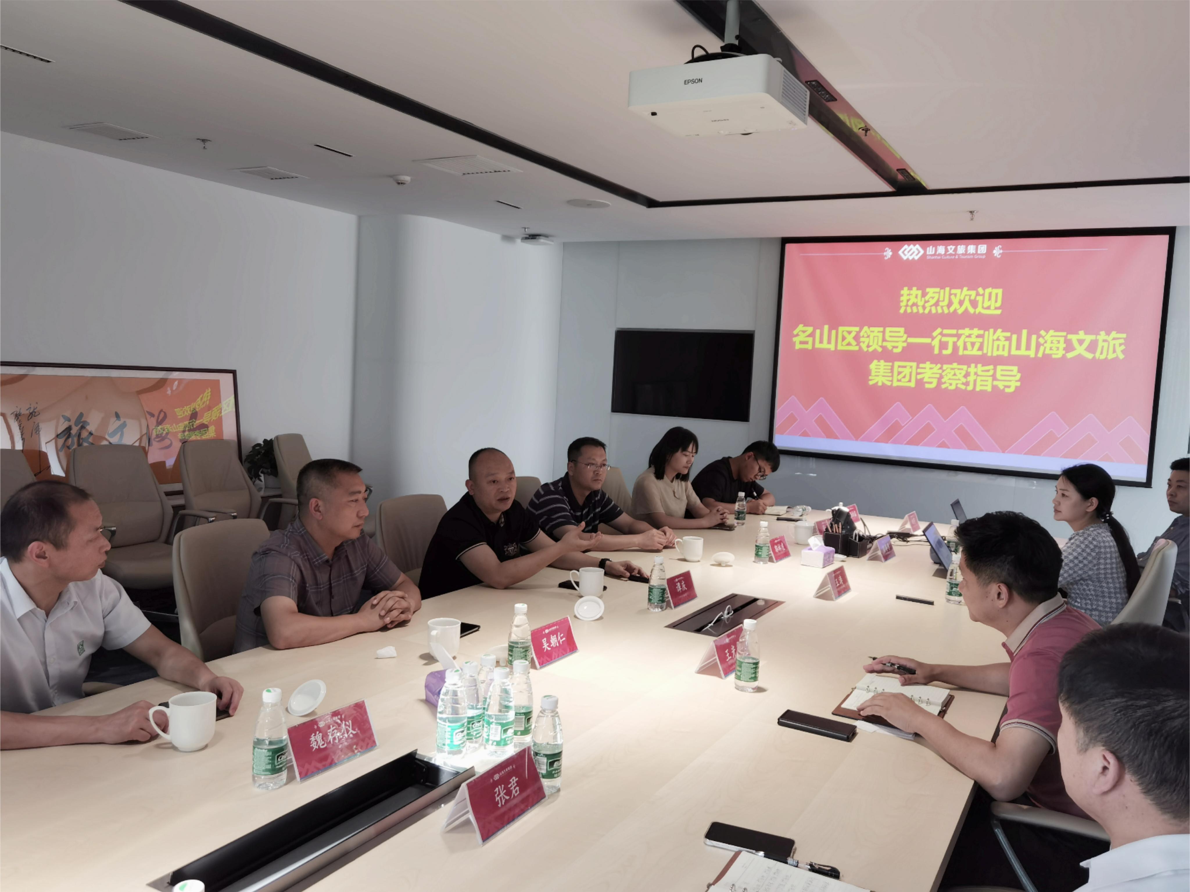 6月14日下午,四川省雅安市名山区副区长谭庆一行到山海文旅集团考察交流,集团执行总裁王涛、副总裁王光华接待来访并举行座谈会。