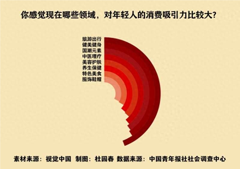 今年两会期间,中国青年报社社会调查中心联合问卷网(wenjuan.com),进行了一项两会期待调查,共有2202人参与。两会调查显示,旅游出行、健美健身、国潮元素是年轻人消费热情最高的三方面。