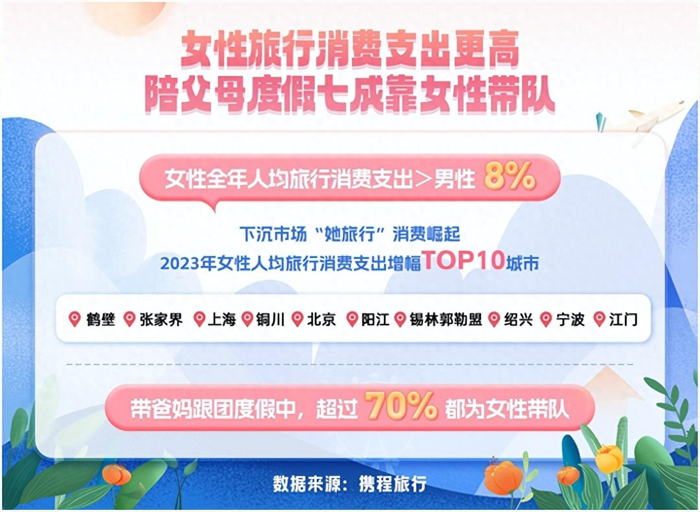 三月春光明媚,万物复苏,远方有自然、美好和诗意。越来越多的女性旅行者们也纷纷启程,越玩越野,逐美而行。她们中,有骑自行车、开越野车闯遍世界、踏遍全国的银发奶奶;有带娃周游世界60多个国家的中年宝妈;有来自异国他乡,偏爱打卡中国大美文化的国外青年旅者。值三八节前夕,携程发布《2024女性旅行消费洞察报告》(以下简称:报告),全面洞察疫情后数千万女性旅行用户消费习惯和偏好;看老中青三代女性旅者如何闯荡世界、在旅途中发现和寻找自我。