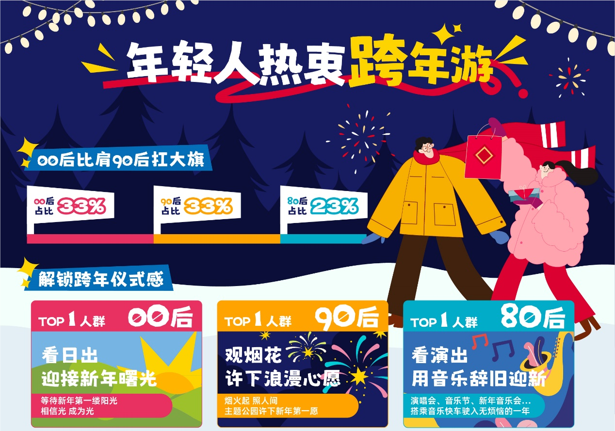 近日,携程发布《2024年元旦跨年游旅游洞察》显示,截至12月15日,2024年元旦假期国内整体旅游订单量同比去年增长超3倍,酒店订单同比增长超5倍,机票增长205%,跟团定制游等度假订单增长240%。从搜索热度来看,携程平台上的境内机票搜索热度较2019年同期增长26%,境内酒店搜索热度较2019年提高170%。