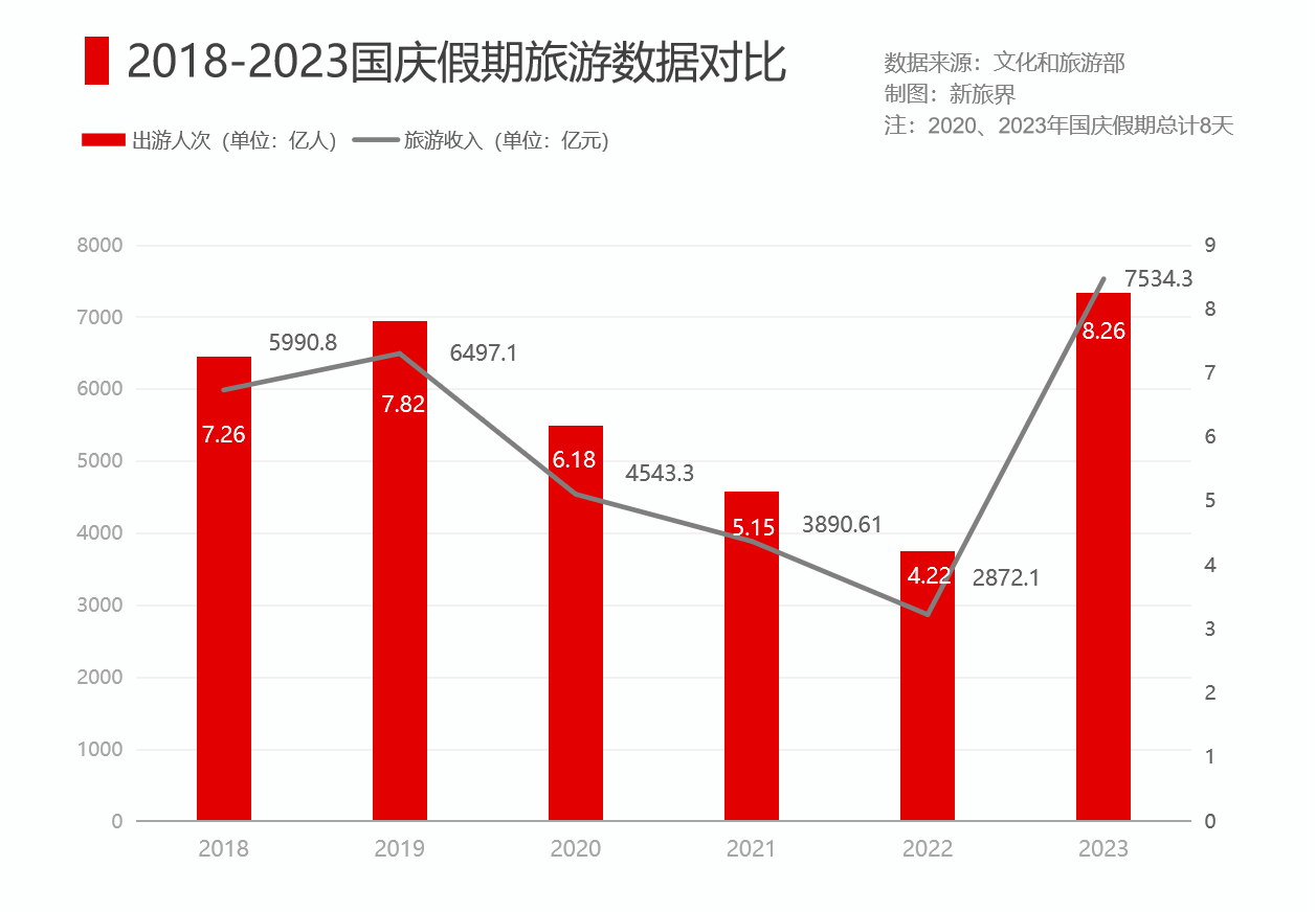 中秋和国庆相连,形成了8天超长假期,加上杭州亚运会和政策效应的叠加影响,形成了有统计记录以来热度最高的假日旅游市场。那么,这个最热“黄金周”有什么特点?我们梳理了一组数据,带你读懂2023年中秋国庆“黄金周”。