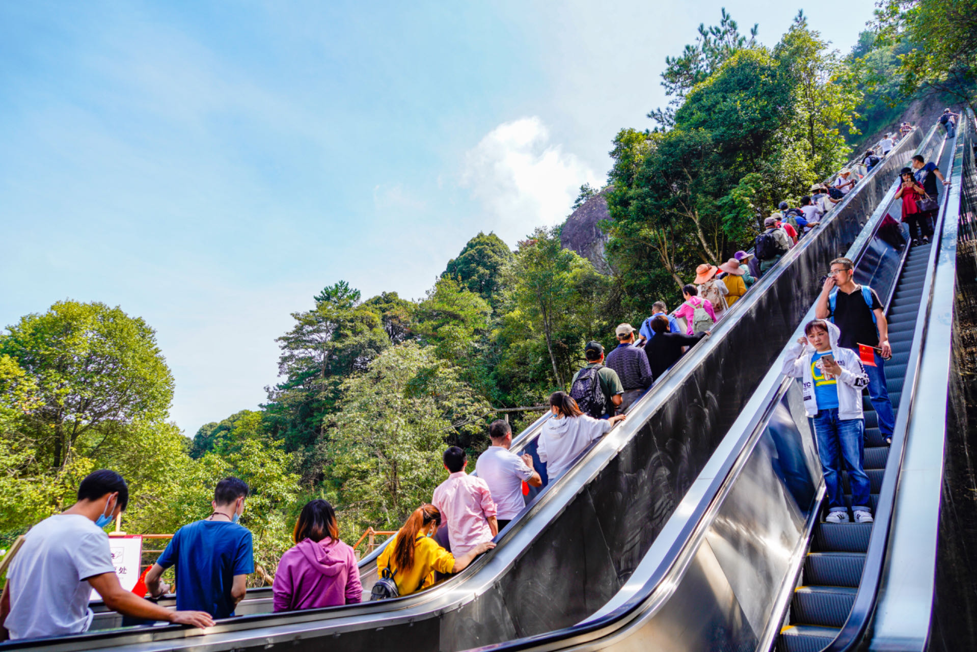 “没有想到网友这么有才华,我们也觉得‘无痛爬山’这个概念非常形象、有意思。” 浙江神仙居景区相关负责人顾巧露没想到景区突然“火”了一把。网友口中的自动扶梯叫“南天梯”,神仙居景区投资2000万元打造,2020年国庆节前投运,电梯双向共4组,单向运力可达3600人/小时。关键是,乘坐“南天梯”是免费的。