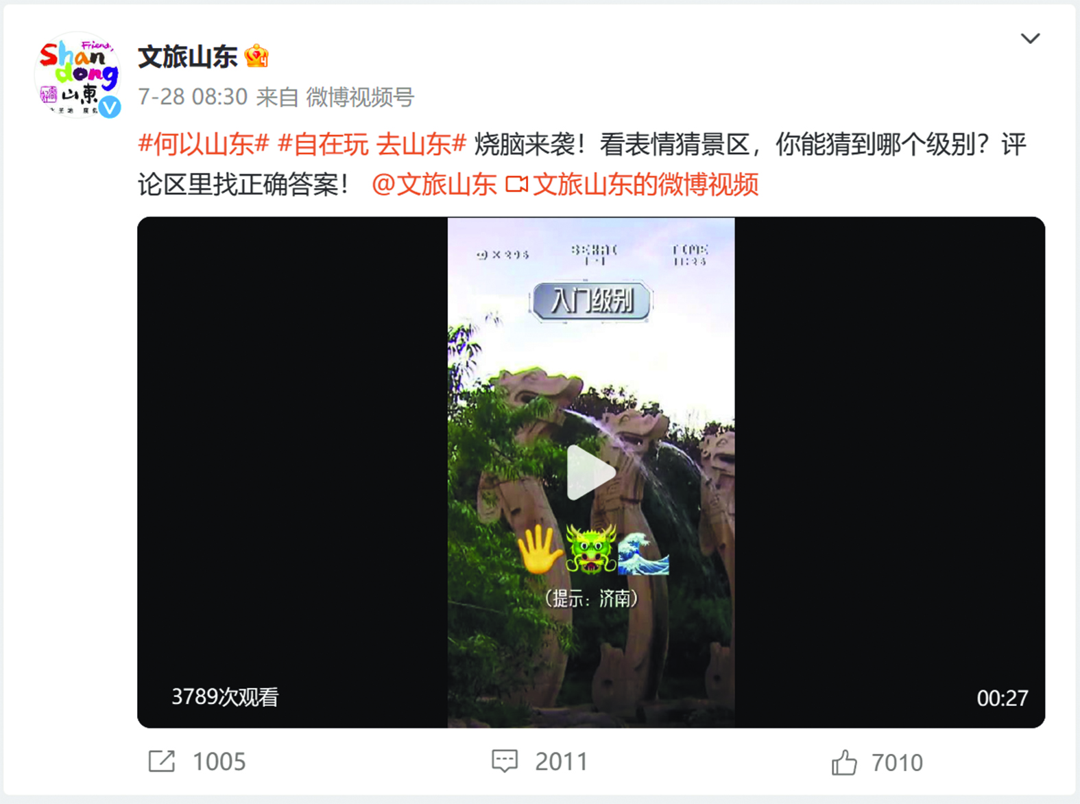 图7 “文旅山东”微博账号7月发布的博文截图